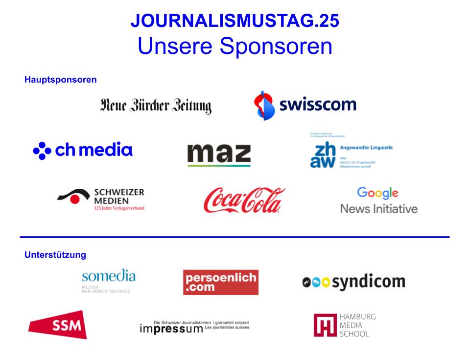 | 15.30 – 16.20 Uhr | Mutig, neu, unbeirrt: Warum es junge Journalist:innen braucht, die etwas wagen Mit Tizian Schöni (Chefredaktor WNTI) und Simona Boscardin (Gründerin von On Fire) Moderation: Sandro Brotz (SRF) | Fotos & KI: Wie transparent müssen Medien sein? Mit Christoph Schütz (Fotograf), Marlis Prinzing (Medienethikerin), Alessandro della Valle (Keystone-SDA) und Susan Boos (Presserat) Moderation: Reto Vogt (QuaJou) | ||