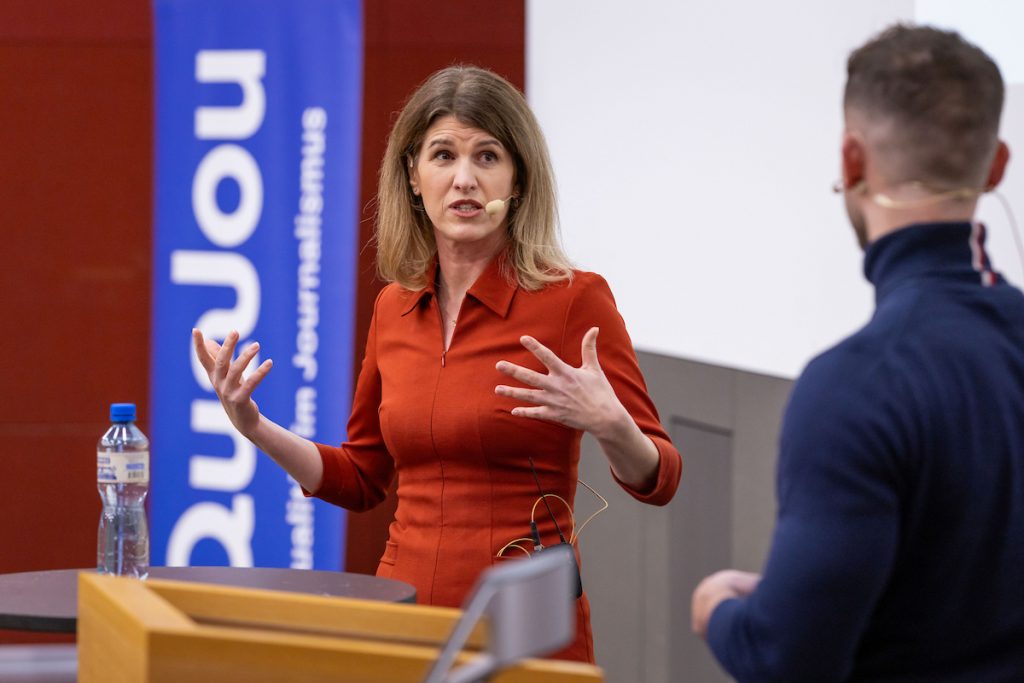 Das war zwar lustig, aber nicht ganz falsch. Und trotzdem zeigte sich in den folgenden Panels ein durchaus anderes Bild der Branche: Vertreterinnen und Vertreter aus verschiedenen Firmen und mit verschiedenen Aufgaben waren sich einig darin, dass gerade wegen KI Qualitätsjournalismus der einzige Weg aus der Krise ist.